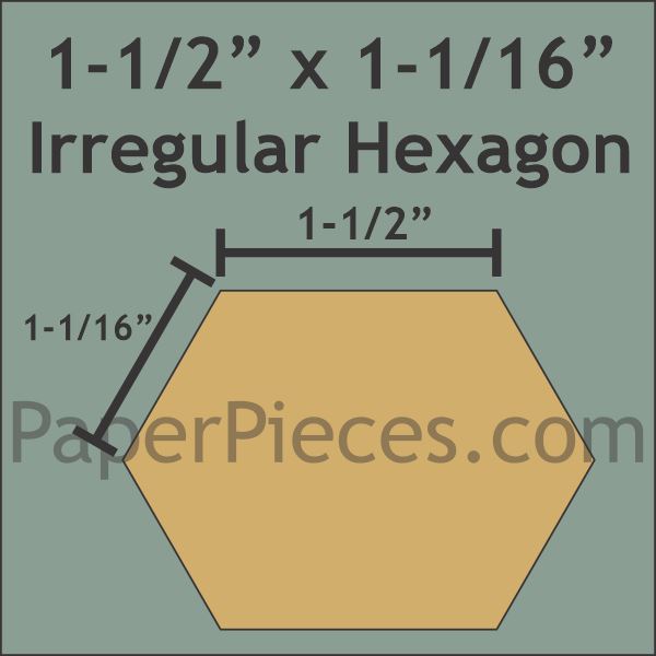 1-1/2" x 1-1/16" Irregular Hexagon: Paper Pieces and Acrylic Templates sold separately. Please select Product Options above for Quantities and Descriptions.