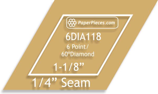 1-1/8" 6 Point-60 Degree Diamond Paper Pieces and Acrylic Templates. Paper Pieces and Acrylic Templates Sold Separately. For Quantities and Descriptions, Please Select Product Options Above.