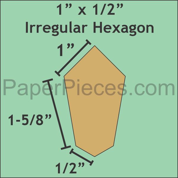 1" x 1/2" Irregular Hexagon: Paper Pieces and Acrylic Templates sold separately. Please select Product Options above for Quantities and Descriptions.
