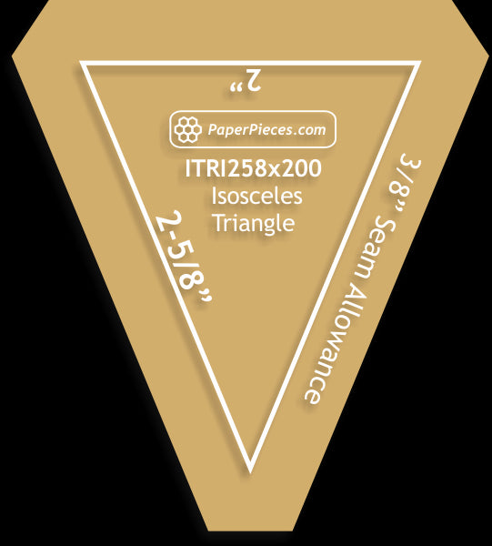 Acrylic Fabric Cutting Template: 2-5/8" x 2" Isosceles Triangle With 1/4" Seam Allowance