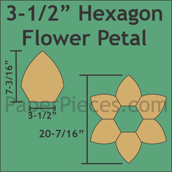 3-1/2" Hexagon Flower Petal: Paper Pieces and Acrylic Templates sold separately. Please select Product Options above for Quantities and Descriptions.
