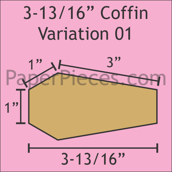 3-13/16" Coffin Variation 01 Acrylic Fabric Cutting Templates and Paper Pieces