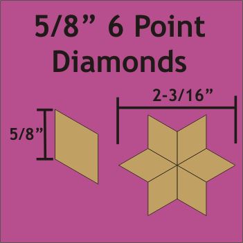 5/8" 6 Point-60 Degree Diamond Papers and Acrylics. Paper Pieces and Acrylic Templates Sold Separately. For Quantities and Descriptions, Please Select Product Options Above.