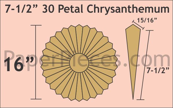 Windowed Acrylic Fabric Cutting Template: 7-1/2" 30 Petal Chrysanthemums With 1/4" Seam Allowance