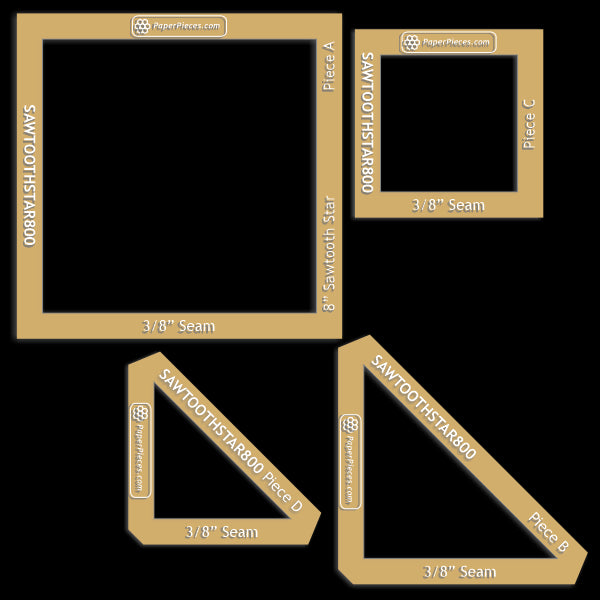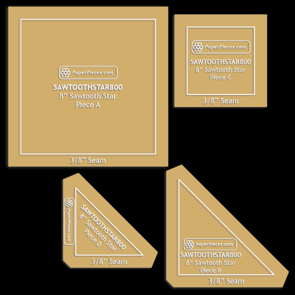 8" Sawtooth Star Block: : Paper Pieces & Acrylic Templates Sold Separately. For quantities & descriptions, please select Production Options above.