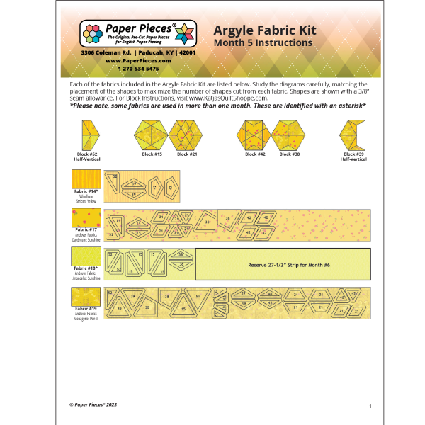 Argyle Month 5 Fabric Kit Cutting / Placement instructions. FREE DOWNLOAD.