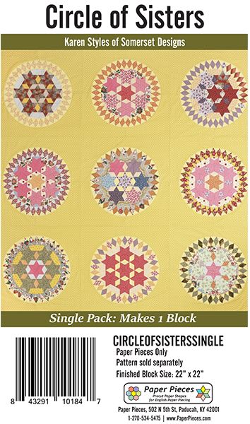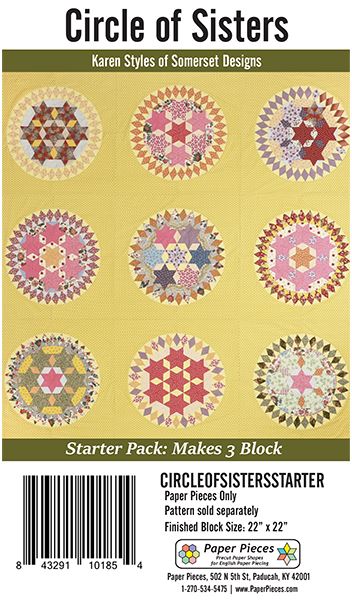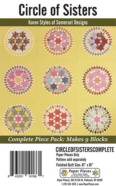 Circle of Sisters Pattern + 1/4" Seam includes pattern instructions and 5 Piece Acrylic Template Set with chosen Seam Allowance and Marking Holes.