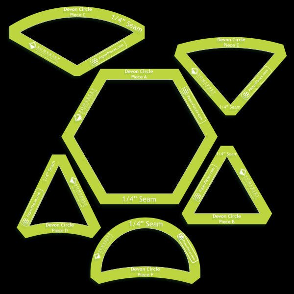 Includes 6 Piece Devon Circle Windowed Acrylic Template Set with ¼" Seam Allowance.