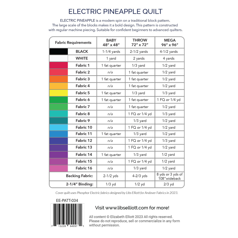 Electric Pineapple Quilt Pattern by Libs Elliott