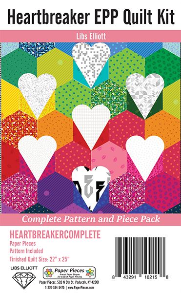 This kit contains the pattern and paper pieces to make the Heartbreaker Mini Quilt by Libs Elliott. Fabric not included. 8 Piece Acrylic Fabric Cutting Template sold separately. Available in 3/8" or 1/4" Seam Allowance.