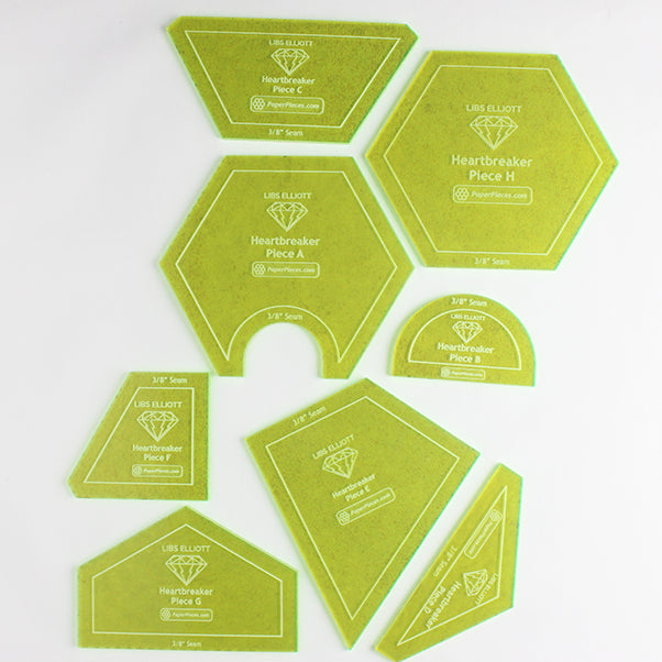 Heartbreaker 8 Piece Acrylic Fabric Cutting Template Set with 1/4" Seam Allowance