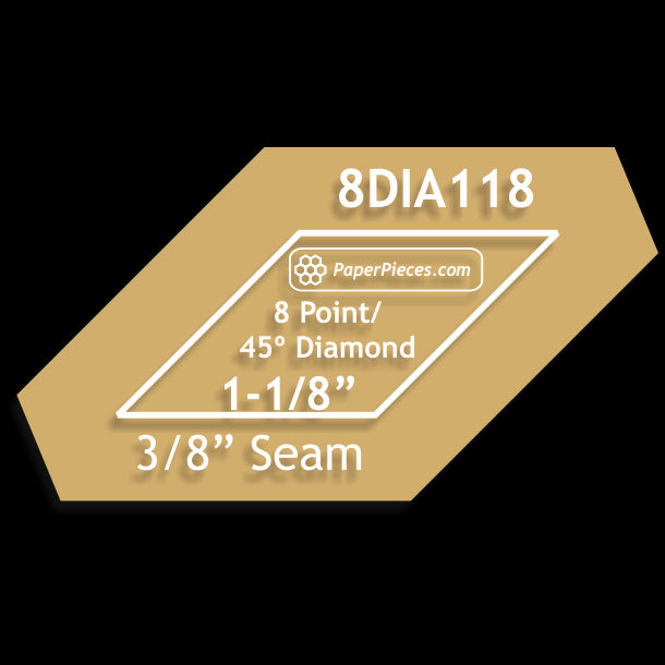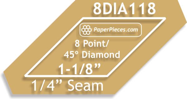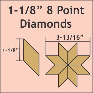 Acrylic Fabric Cutting Template: 1-1/8" 8 Point Diamonds With No Seam Allowance