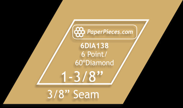 1-3/8" 6 Point Diamond Paper Pieces and Acrylic Templates. Paper Pieces and Acrylic Templates Sold Separately. For Quantities and Descriptions, Please Select Product Options Above.