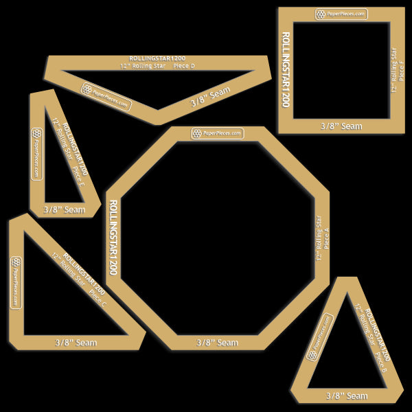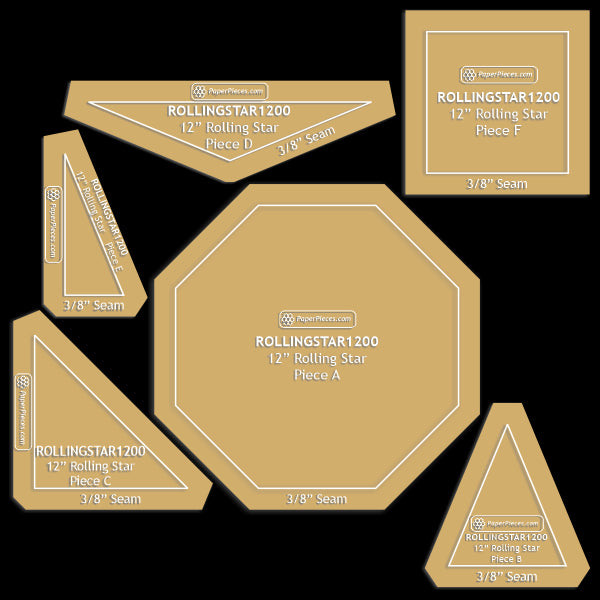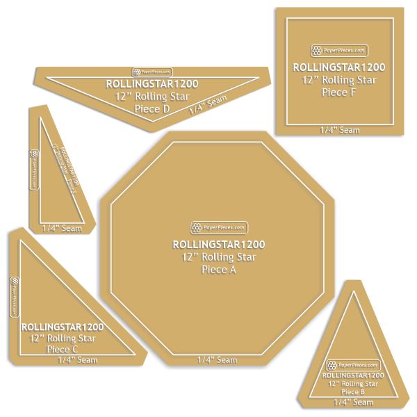 12" Rolling Star by Mary Koval: Paper Pieces and Acrylic Templates sold separately. Please select Product Options above for Quantities and Descriptions.