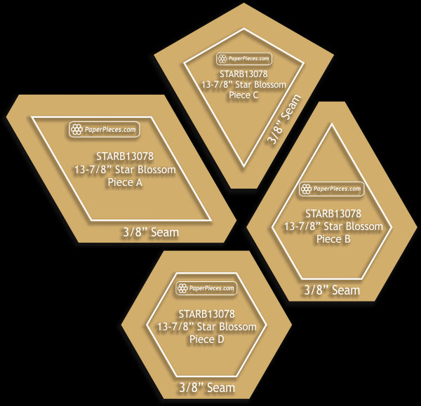 Acrylic Fabric Cutting Template: 13-7/8" Star Blossom With 3/8" Seam Allowance (4 Piece Set)