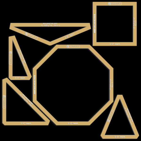 18" Rolling Star by Mary Koval: Acrylic Fabric Cutting Template (6 Piece) Set with NO Seam Allowance