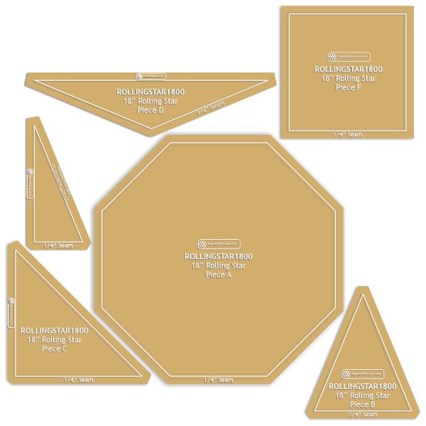 18" Rolling Star by Mary Koval: Paper Pieces and Acrylic Templates sold separately. Please select Product Options above for Quantities and Descriptions.