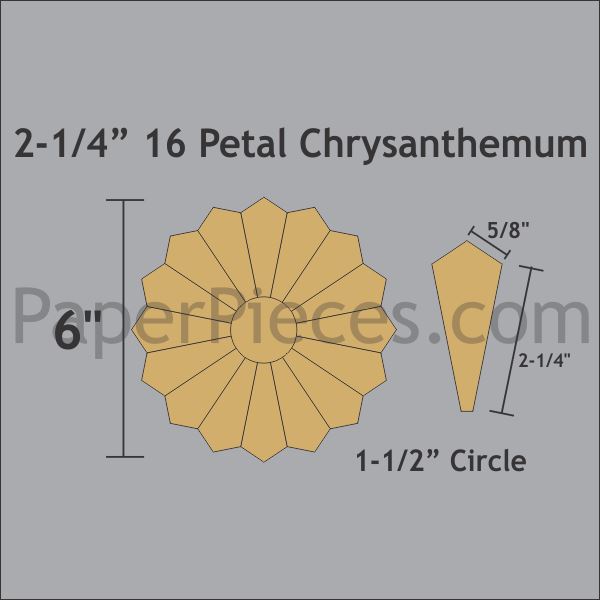 Acrylic Fabric Cutting Template: 2-1/4" 16 Petal Chrysanthemums With 1/4" Seam Allowance
