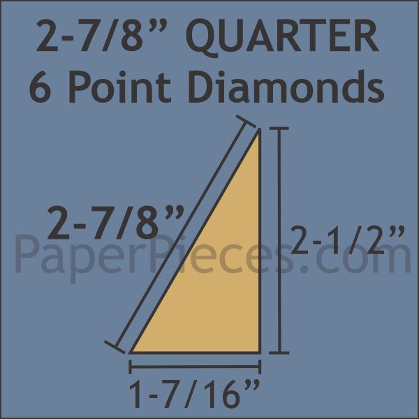 2-7/8" Quarter 60 Degree Diamond: Paper Pieces and Acrylic Templates sold separately. Please select Product Options above for Quantities and Descriptions.
