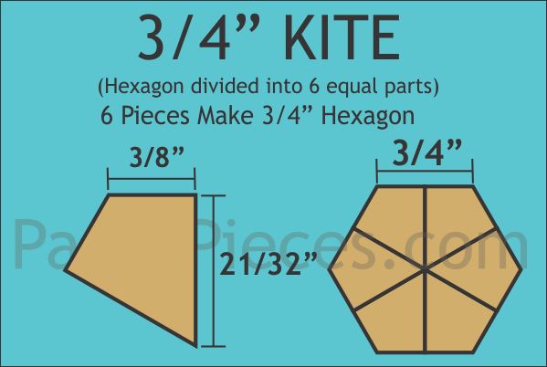 Acrylic Fabric Cutting Template: 3/4" Hexagon Kite With 1/4" Seam Allowance