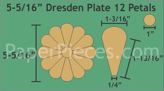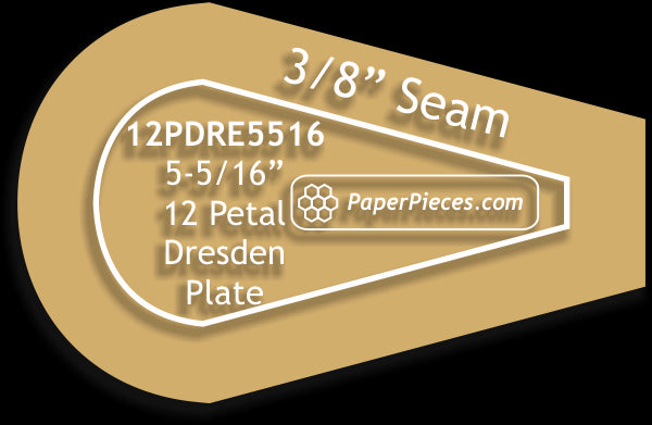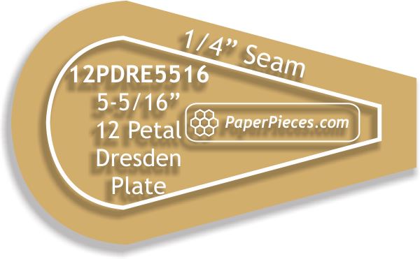 Acrylic Fabric Cutting Template: 5-5/16" 12 Petal Dresden Plate Petal Only With No Seam Allowance
