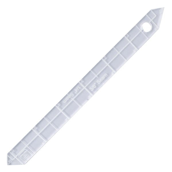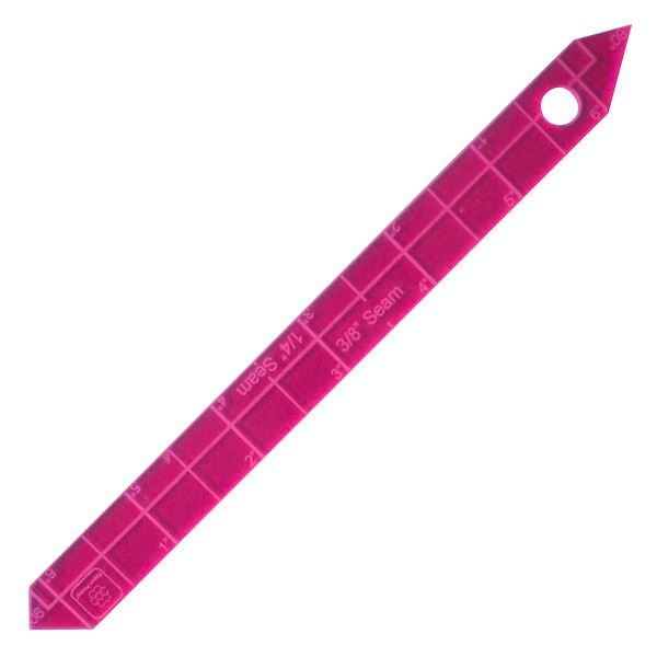 Easily choose between a 1/4" and 3/8" seam allowance using this handy 6" ruler! Simply line up the center line against your Paper Piece, and cut on the outside of the ruler. The pointed ends allow you to bevel your corners, reducing bulk.