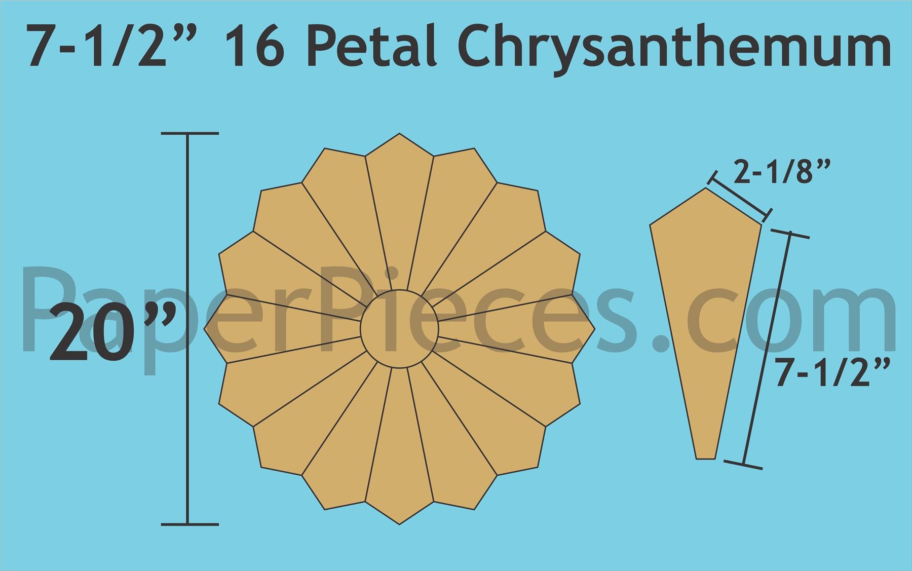 Acrylic Fabric Cutting Template: 7-1/2" 16 Petal Chrysanthemums With 1/4" Seam Allowance