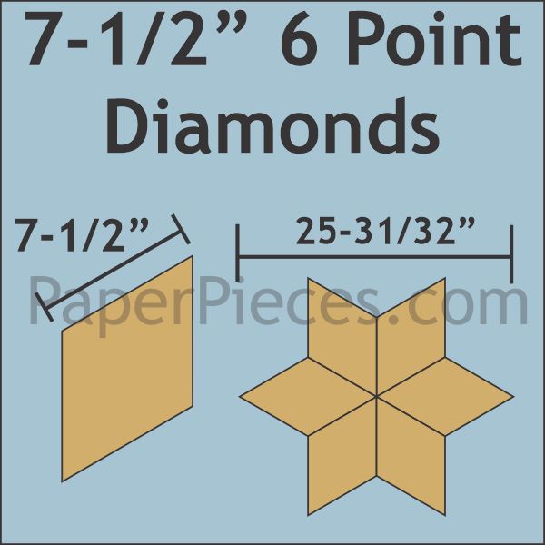 7-1/2" 6 Point Diamond: Paper Pieces and Acrylic Templates sold separately. Please select Product Options above for Quantities and Descriptions.