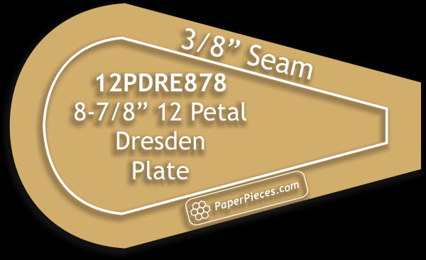 Windowed Acrylic Fabric Cutting Template: 8-7/8" 12 Petal Dresden Plate Petal Only With 1/4" Seam Allowance