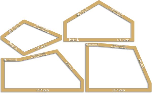 Windowed Acrylic Fabric Cutting Template: 9" 5 Point Star Block With 3/8" Seam Allowance (4 Piece Set)