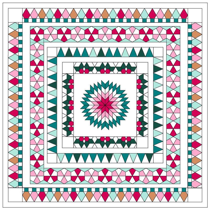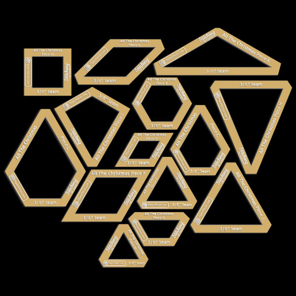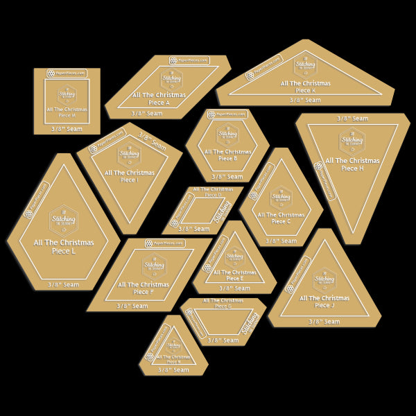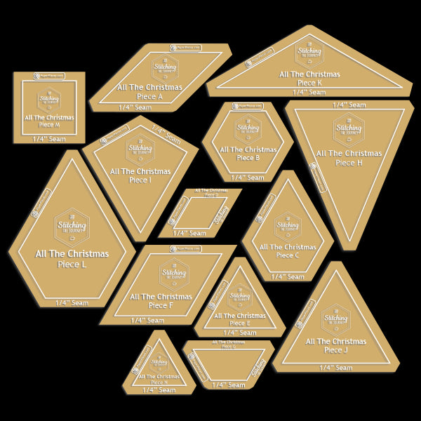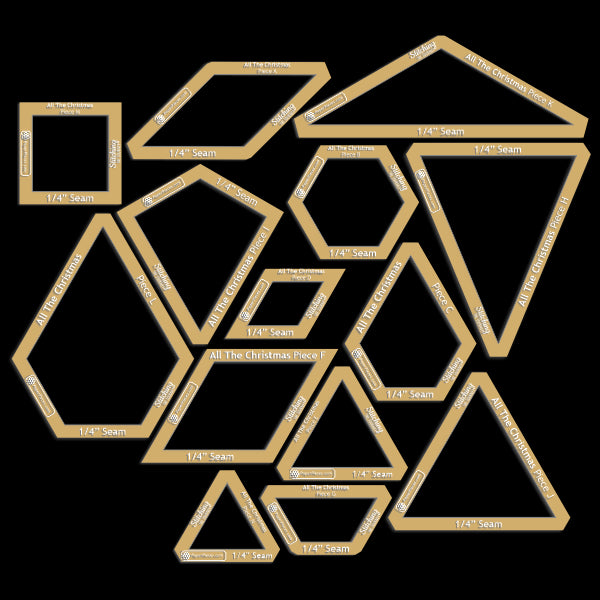 All the Christmas is a medallion-style sampler quilt. From a traditional 8-point star-inspired center block to festive holly and cheerful twinkle lights, this quilt has "all the things." As a sampler quilt, not only does this quilt feature different blocks, it utilizes different sewing techniques. Beginning at the center, each round is comprised of panels of English paper pieced (EPP) blocks, that are then machine sewn from the center outwards to create the quilt top. Without a final border the quilt is an oversized throw, measuring 74" square, but add any size border to make it bed size!