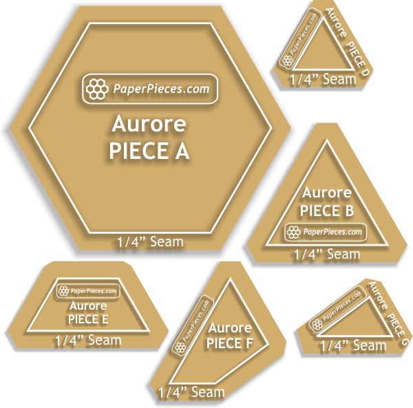 (6) Piece Aurore Acrylic Set includes shapes A, B, D, E, F, and G and is available with a 3/8" or 1/4" seam allowance.