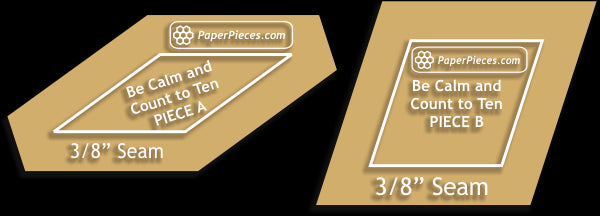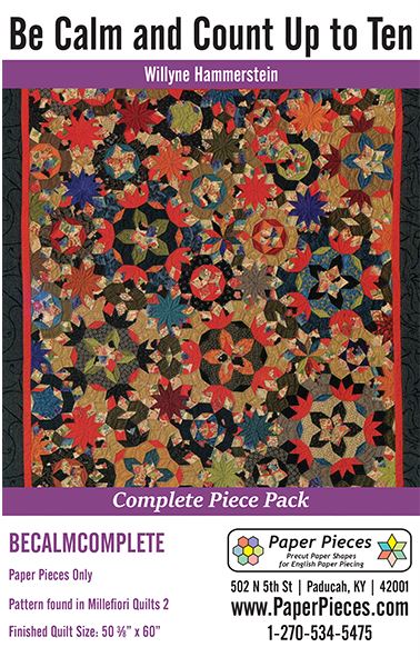 Be Calm and Count Up to Ten Piece Packs and Acrylics. Pattern can be found in Millefiori Quilts 2 by Willyne Hammerstein Finished quilt is approx. 50-3/8" x 60" (127.5 cm x 152 cm) Complete Piece Pack Includes ALL the Pre-Cut Papers, approximately 1655 pieces, to makeBe Calm and Count Up to Ten: Piece A and B. 2 PieceBe Calm and Count Up to TenAcrylic Set includes shapes A and B and is available with a 3/8" or 1/4" seam allowance.