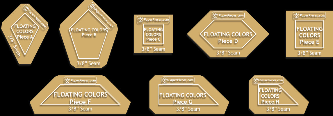 (8) PieceFloating Colors Acrylic Set includes shapes A, B, C, D, E, F, G, and H and is available with a 3/8" or 1/4" seam allowance.