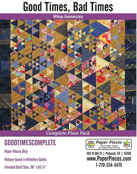Starter Pack contains approximately half of the Paper Pieces needed to startGood Times / Bad Times. Pieces will need to be reused in order to complete the entire quilt as pictured in the book.