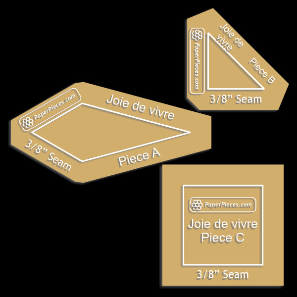 Joie de Vivre: WINDOWED Acrylic Fabric Cuttin Templates (3 Piece Set) with 3/8" Seam Allowance