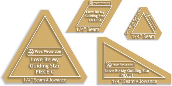 (4) Piece Love Be My Guiding Star Acrylic Set includes shapes A, B, C and D and is available with a 3/8" or 1/4" seam allowance.