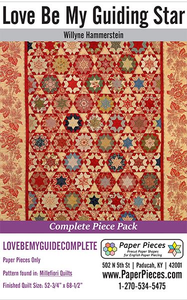 Love Be My Guiding Star Paper Piece Packs and Acrylics. Pattern found in Millefiori Quilts by Willyne Hammerstein Finished quilt is approx. 52-3/4" x 68-1/2" (134 cm x 174 cm)