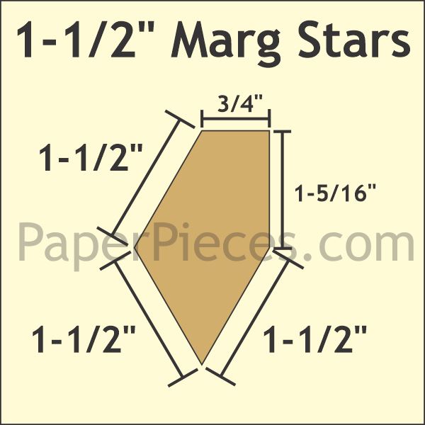 1-1/2" Marg Stars: Paper Pieces and Acrylic Templates sold separately. Please select Product Options above for Quantities and Descriptions.