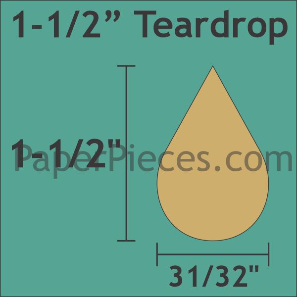 Acrylic Fabric Cutting Template: 1-1/2" Teardrop With 1/4" Seam Allowance