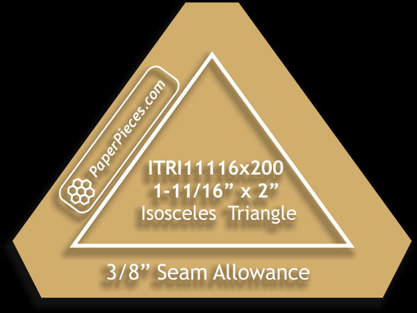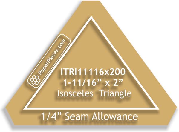 Windowed Acrylic Fabric Cutting Template: 1-11/16" x 2" Isosceles Triangle With 1/4" Seam Allowance