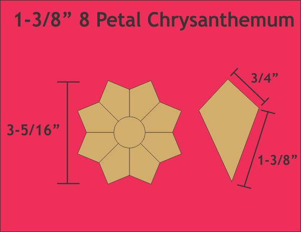 Windowed Acrylic Fabric Cutting Template: 1-3/8" 8 Piece Chrysanthemums With 3/8" Seam Allowan Seam Allowance