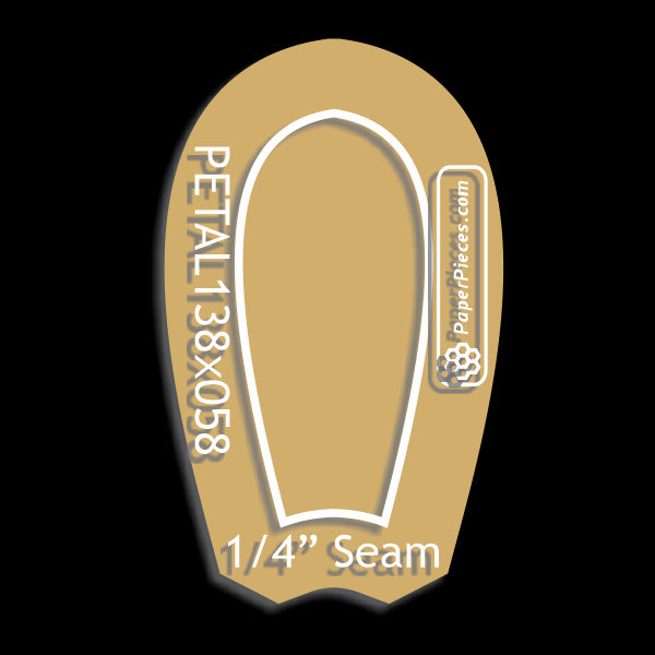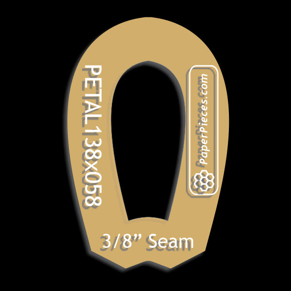 1-3/8" x 5/8" Petal: WINDOWED Acrylic Fabric Cutting Template with 1/4" Seam Allowance