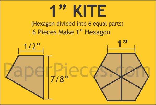 Acrylic Fabric Cutting Template: 1" Hexagon Kite With No Seam Allowance