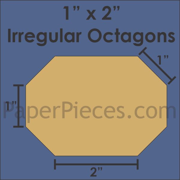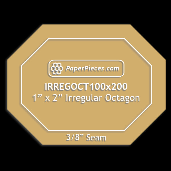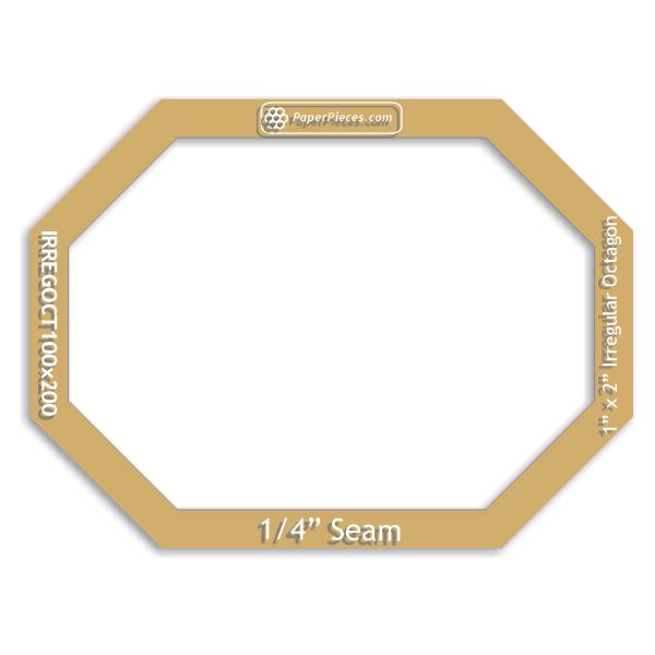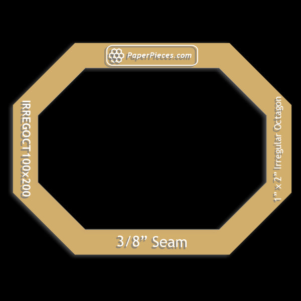 1" x 2" Irregular Octagon: Acrylic Fabric Cutting Template with 1/4" Seam Allowance