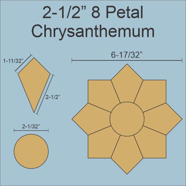 2-1/2" 8 Petal Chrysanthemum: Paper Pieces and Acrylic Templates sold separately. Please select Product Options above for Quantities and Descriptions.