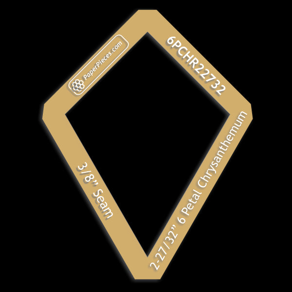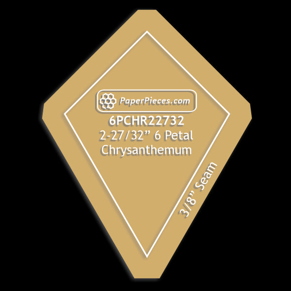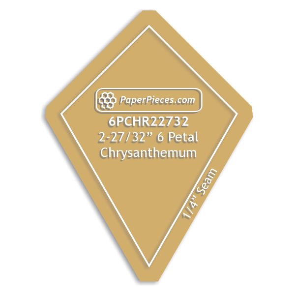 2-27/32" 6 Petal Chrysanthemum: Acrylic Fabric Cutting Template with 1/4" Seam Allowance
