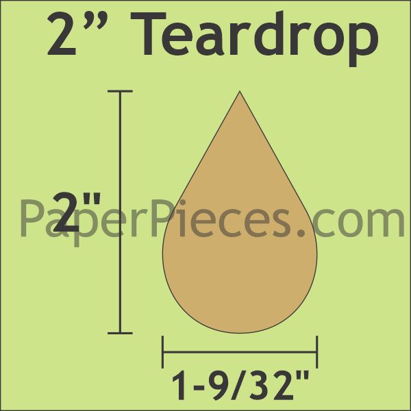 Acrylic Fabric Cutting Template: 2" Teardrop With No Seam Allowance