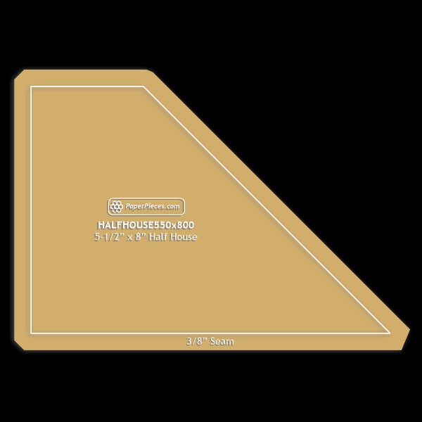5-1/2" x 8" Half House: Acrylic Fabric Cutting Template with 3/8" Seam Allowance