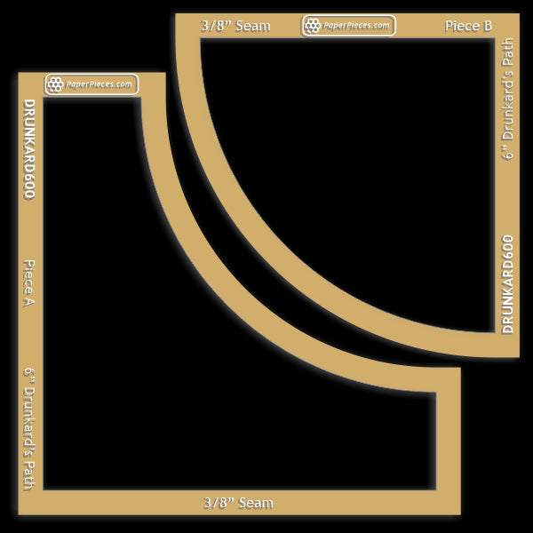 6" Drunkard's Path Acrylic Fabric Cutting Templates and Paper Pieces